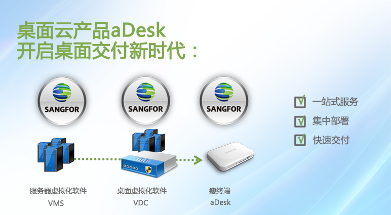 深信服推出一站式桌面云aDesk方案可以帮您简化80%以上的桌面运维工作,有效提升企业信息资产安全,打造工作随身行的办公模式...