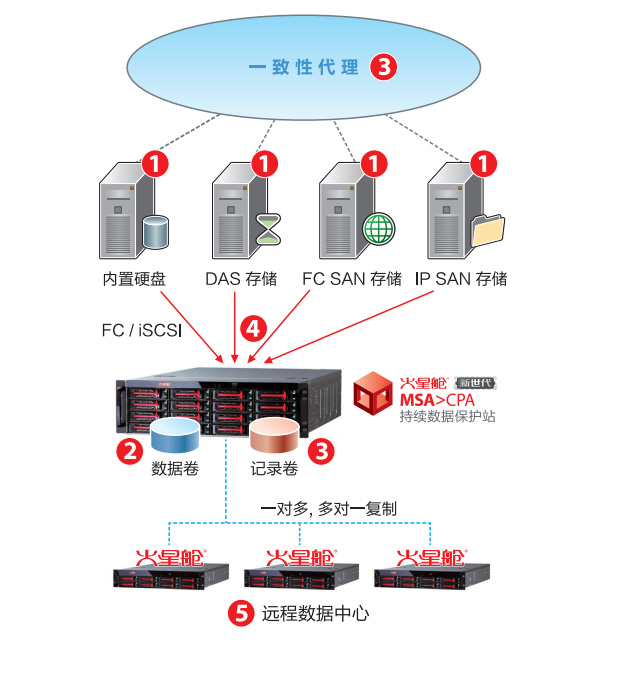 充分优化的持续数据保护设备。基于带外方式写入数据,实现火星舱与生产存储的完全实时同步。