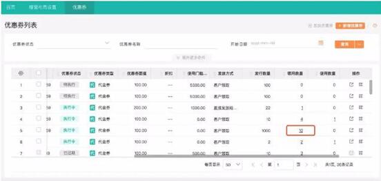 优惠券列表可以联查优惠券的领取和使用情况,使用的客户、联系人、联系电话、领取时间、是否使用和使用渠道、分享的业务员。