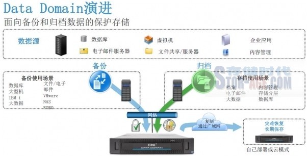 看起来,整合的基础是这个“单一的保护存储平台”规模的纵向扩展(Scale-up)?EMC方面表示,如果从数据保护的整体架构而言,老款和新款的Data Domain都可以互相做数据复制和数据保护,能够以一个有效的方式对多台设备进行统一的管理。