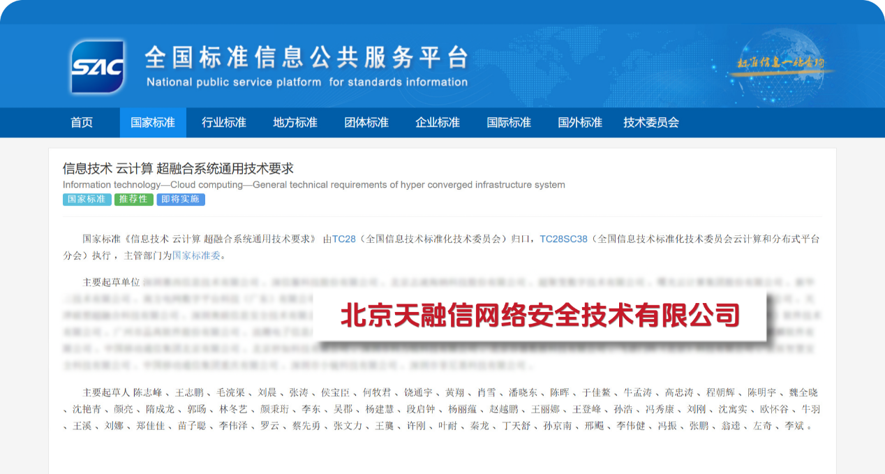 日前,国家市场监督管理总局、国家标准化管理委员会正式发布GB/T 45399-2025《信息技术 云计算 超融合系统通用技术要求》,并将于10月1日正式实施。该标准由天融信等30余家单位共同起草,是我国超融合领域首个国家标准。
