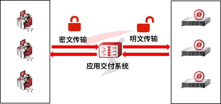 天融信应用交付系统是处理“高性能”HTTPS加密流量的主力军,内置专业SSL卸载卡。在大流量的高校场景中,可将SSL加密/解密工作从服务器迁移至天融信协议转换交付系统(TopApp)中,客户端发起的HTTPS连接经过TopApp处理后会变成明文HTTP数据转发,有效减少加密运算对服务器的资源占用,显著提升服务器处理业务能力。