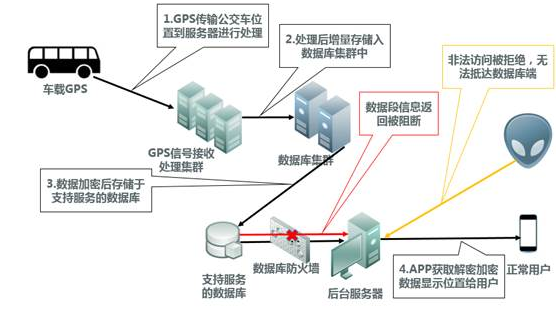 此次事件中黑客盗取了存放在支持服务数据库中的加密数据。根据“酷米客”员工的说法:攻击者是采用模拟用户登陆访问,从实时公交app获取公交信息。攻击者制作的模拟访问软件能同时模拟几百万甚至更多的用户访问登陆软件,这些访问把结果数据综合起来就能获得公交实时数据,再次处理后,通过APP发布信息。这样一套访问-获取-发布流程,最终数据输出,只比酷米客的数据晚几毫秒。由此分析得出:整个事件的关键是如何在数据流上对非正常用户的流量进行拦截。作为一个互联网公司,相信酷米客的信息安全意识不会很弱,显然,目前现有的数据安全防护不足以抵御此类攻击。