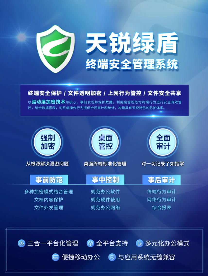 综合以上因素,为大家推荐天锐绿盾加密软件。作为一款备受认可的加密软件,天锐绿盾在技术上采用了先进的加密算法,能为企业数据提供高强度的加密保护。它具有出色的兼容性,可与多种系统和软件顺畅协作,不会对企业日常办公造成干扰。操作方面,员工无需复杂学习就能轻松使用,管理员通过简洁的控制台就能高效管理加密策略。而且,天锐绿盾拥有专业的服务团队,能为企业提供从部署到维护的全程支持,让企业使用起来更安心。
